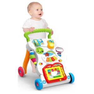 Es un juguete de fácil montaje, divertido, fuerte y resistente. Su función principal es brindarle estabilidad al bebé mientras camina. Cuenta con un sistema de seguridad que evita accidentes y caídas. Además, la barra de empuje te permite guiar y controlar el movimiento del caminador, brindándote tranquilidad mientras tu pequeño se divierte.