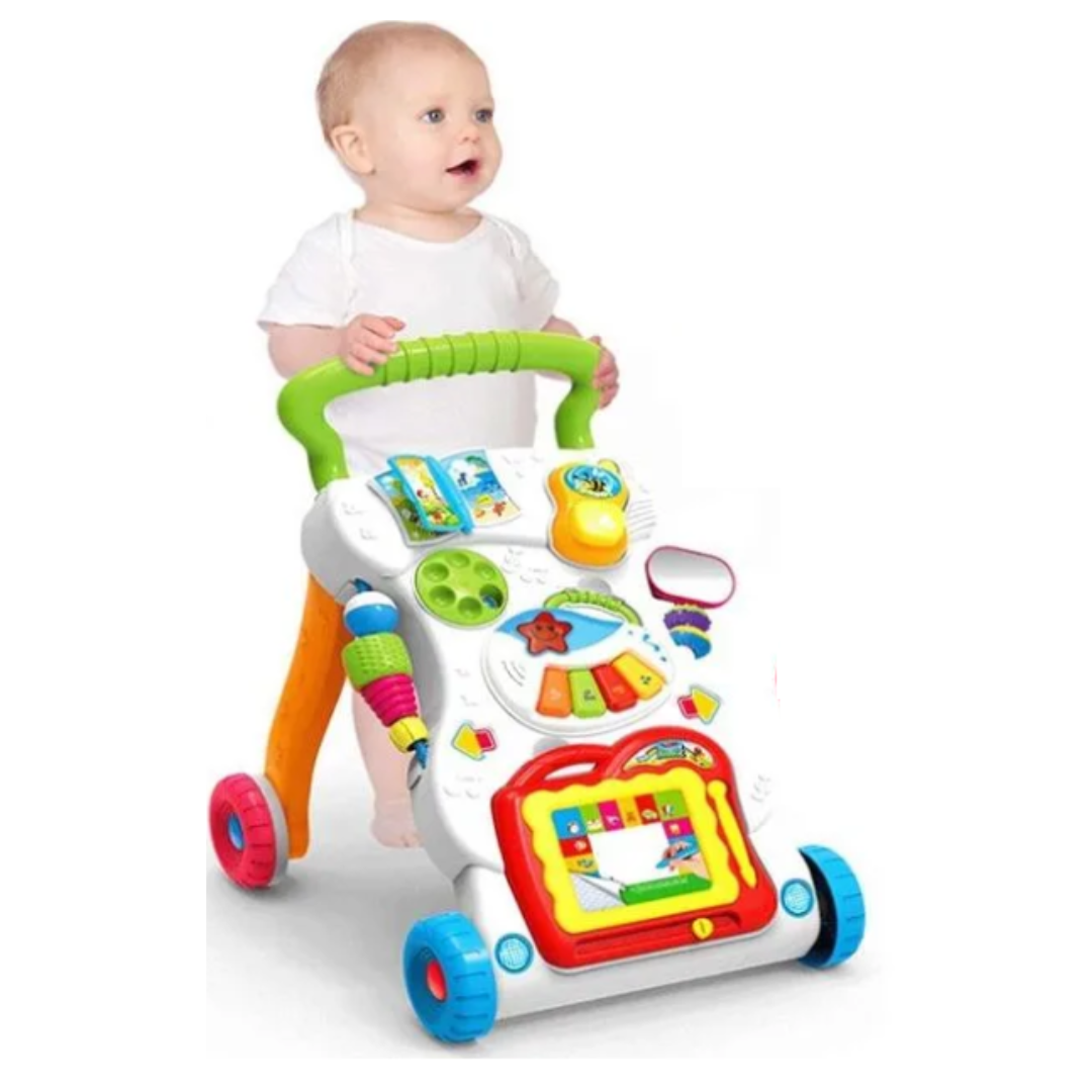 Nuestro caminador musical es súper interactivo y divertido. ¡Será el mejor acompañante de los primeros pasos de tu bebé! Cuenta con luz, sonido y un set de actividades que mantendrán a tu bebé entretenido y estimulado en sus primeros pasos.