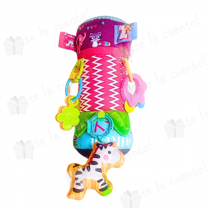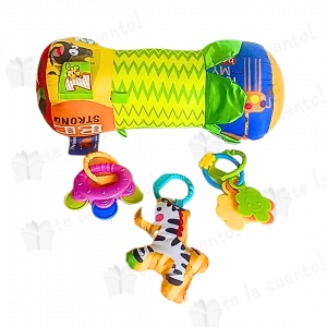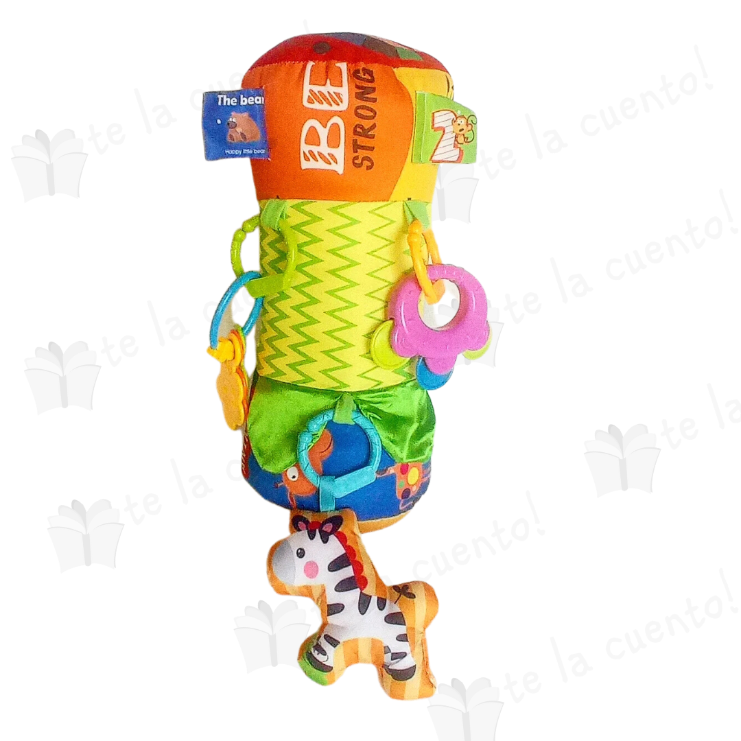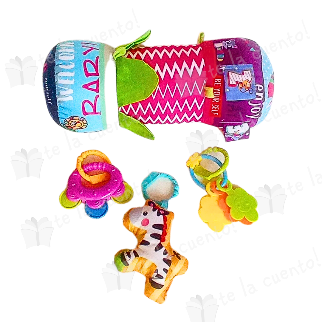El rodillo es perfecto para estimular al bebé, debido a sus múltiples colores, texturas, etiquetas, sonajas que sobresalen y figuras de animalitos que contiene. Estimula la vista, el oído y el tacto.