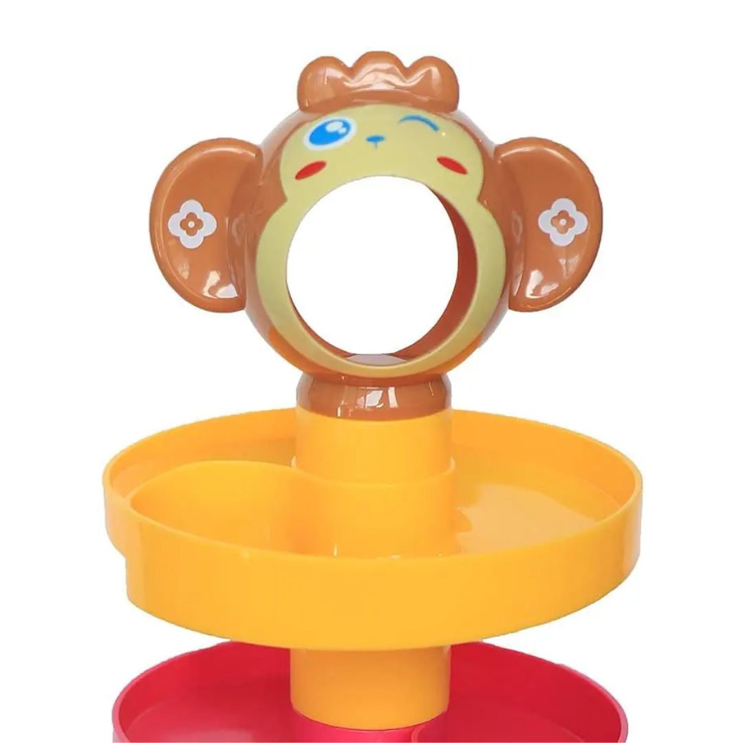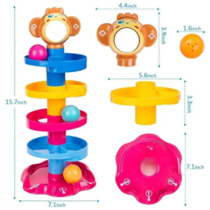 Fomenta la coordinación y la creatividad mientras los niños ven rodar la bola por cada nivel.